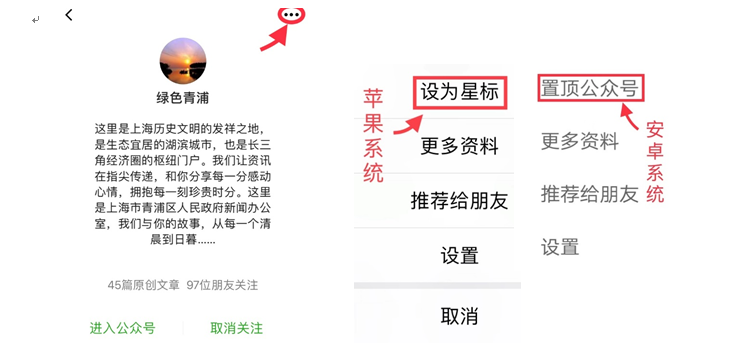 第二步 点击右上角“…”将公众号设为星标或置顶