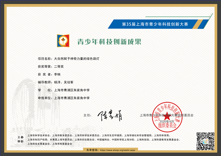 第37届上海市青少年科技创新大赛“青少年科技实践活动”获奖喜报