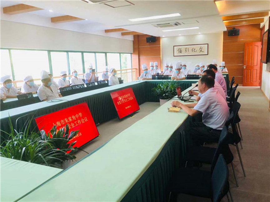 9月1日开学第一天,学校召开了食堂卫生安全工作会议。学校蒋伟勇校长、总务处、全体食堂工作人员参加了会议。
