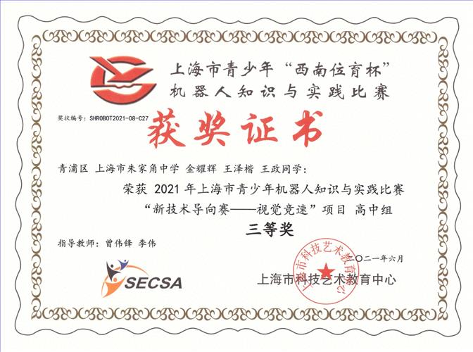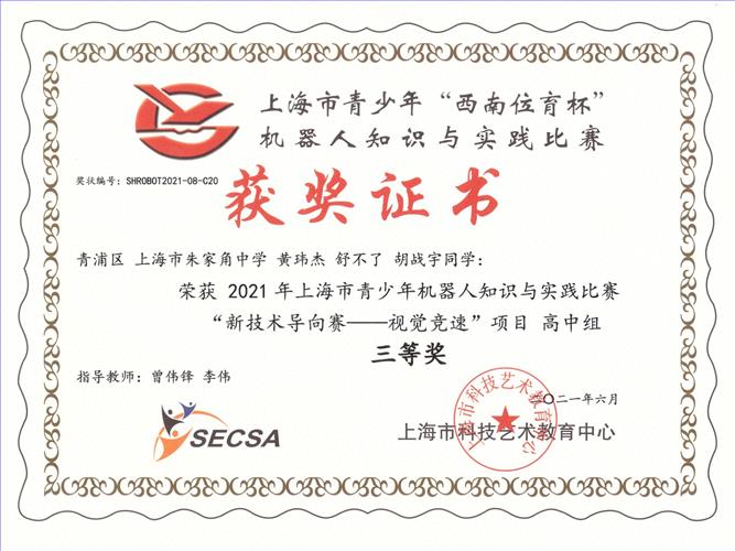 2021上海市青少年“西南位育杯”机器人知识与实践比赛喜报