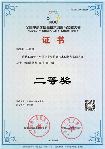 2021年“全国中小学信息技术创新与实践大赛”决赛 智能园艺家 赛项 高中组获奖喜报