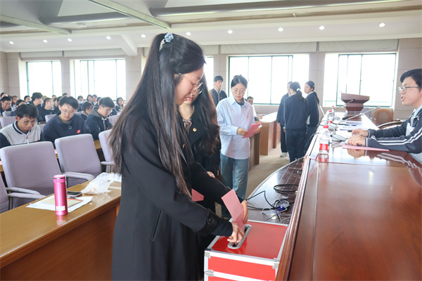 随后,大会严格按照选举流程,宣读总监票人、监票人、计票人名单及第十七届委员会候选人名单,经全体代表表决通过。与会代表认真填写选票、有序投票,选举过程公开、公平、公正。经计票组严谨统计,大会正式公布选举结果:盛心怡、邵瑞祥、王雅宁、黄诗凌、古丽排热、崔丹荔、冒辰七位同志当选为共青团上海市朱家角中学第十七届委员会委员。