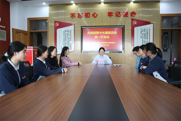 4月20日,共青团上海市朱家角中学第十七届委员会召开第一次全体会议,学校党总支组织委员池坚老师出席会议,会议严格按照选举程序,选举产生盛心怡为团委书记,邵瑞祥、冒辰为团委副书记,并明确委员分工。新一届团委班子结构完善、分工明确,将以更饱满的热情、更务实的作风开展工作,团结带领全校团员青年勇担使命、接续奋斗。